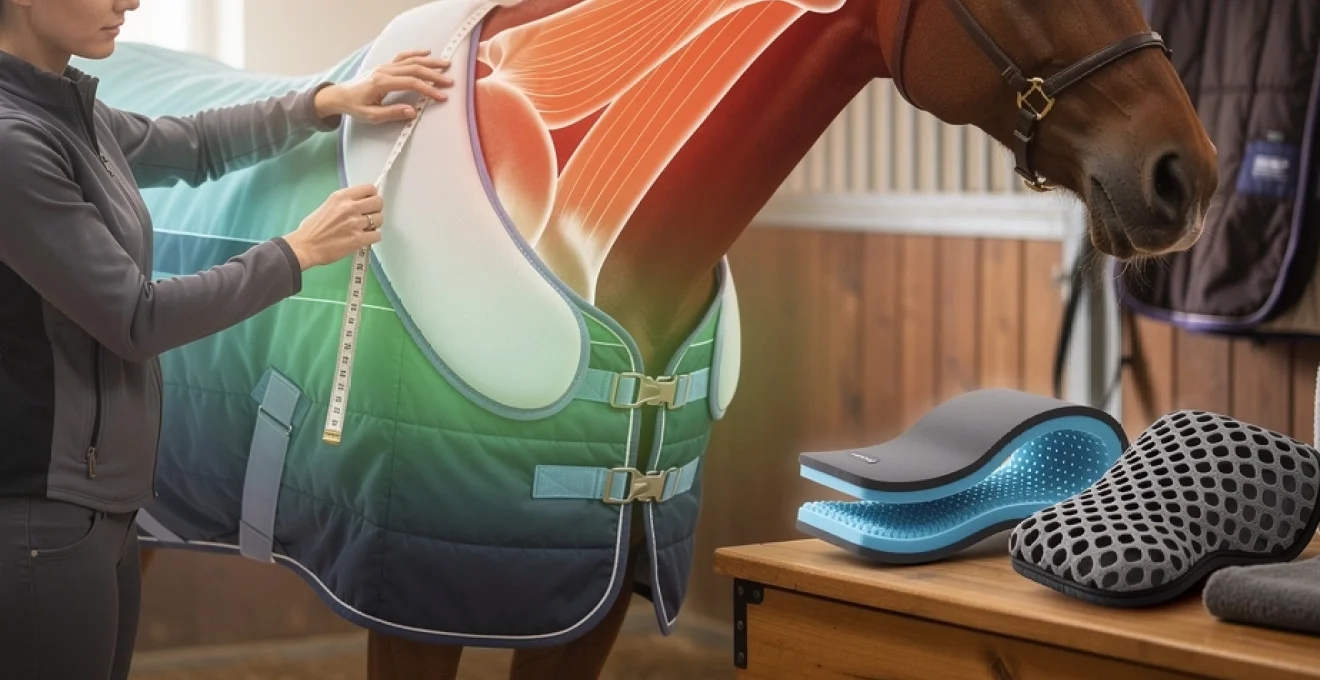 La mousse à mémoire de forme, bien connue en sellerie, commence à apparaître dans certains protège-épaules haut de gamme. Elle épouse la morphologie du cheval et répartit la pression sur une surface plus large, ce qui limite les points d’appui au niveau du garrot et des apophyses épineuses. En revanche, son épaisseur ajoute de la chaleur et, si elle est mal ventilée, peut favoriser la transpiration sous la couverture. Les gels techniques, quant à eux, offrent un amorti plus fin et restent souples même par temps froid, tout en ayant un fort pouvoir antiglisse. Cependant, un gel directement au contact de la peau peut créer un « effet ventouse » et retenir l’humidité. Dans la pratique, ces matériaux se montrent intéressants pour des chevaux très saillants ou convalescents, mais ils doivent être utilisés avec prudence, et uniquement si la couverture est déjà bien adaptée.