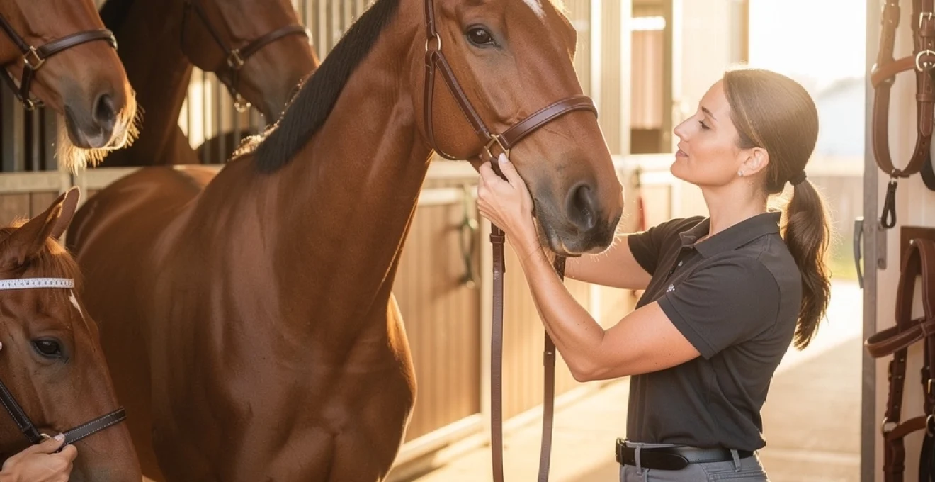 Mesure de la têtière et adaptation au chanfrein du cheval