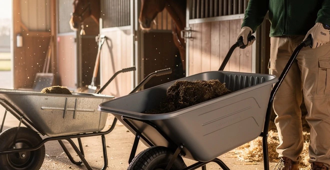 Le cœur de l’utilisation d’une brouette d’écurie robuste reste l’évacuation quotidienne des déjections équines. Fumier, urine, paille ou copeaux humides exercent des contraintes spécifiques sur la cuve : poids important, acidité, adhérence et écoulement de liquides. Les modèles conçus pour le jardinage ou le bricolage ne résistent pas longtemps à ces conditions. C’est pourquoi certains fabricants ont développé des solutions techniques dédiées au curage des boxes.