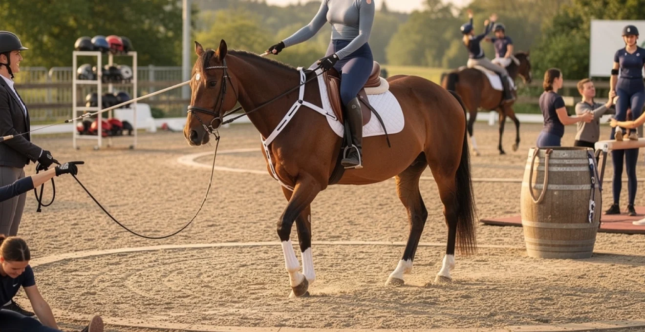 Le longeur assure également la sécurité active : il anticipe les moments critiques (montées, descentes, changements de figure délicats) et reste prêt à ramener le cheval au pas ou à l’arrêt au moindre signe de difficulté. En compétition, sa maîtrise technique est d’ailleurs évaluée et intégrée dans la note globale. Pour progresser, beaucoup d’enseignants recommandent aux futurs longeurs de suivre des formations spécifiques, voire de s’initier au jugement en voltige afin de comprendre finement les attentes de la discipline. Sans un longeur compétent, même le meilleur voltigeur et le meilleur cheval verront leurs performances limitées.