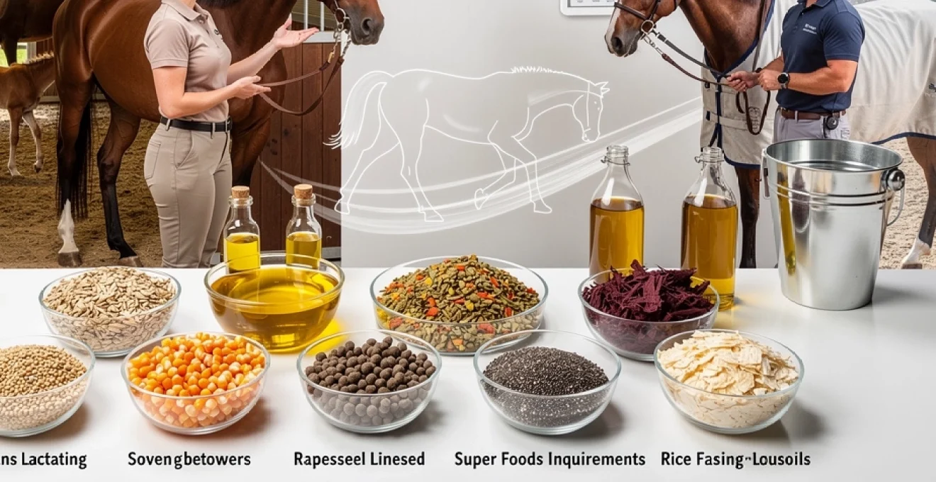 La période de lactation est encore plus exigeante : une jument allaitante de 500 kg peut atteindre 8 à 10 UFC/j, voire davantage selon sa production laitière et l’accès au pâturage. L’apport énergétique insuffisant se traduit par une perte d’état rapide, une baisse de la fertilité future et un poulain qui peut ne pas exprimer pleinement son potentiel de croissance. Vous veillerez donc à sécuriser d’abord le fourrage (foin riche, éventuellement luzerne) puis à compléter avec un aliment concentré spécifique jument suité, plutôt riche en lipides et en fibres fermentescibles qu’en amidon.